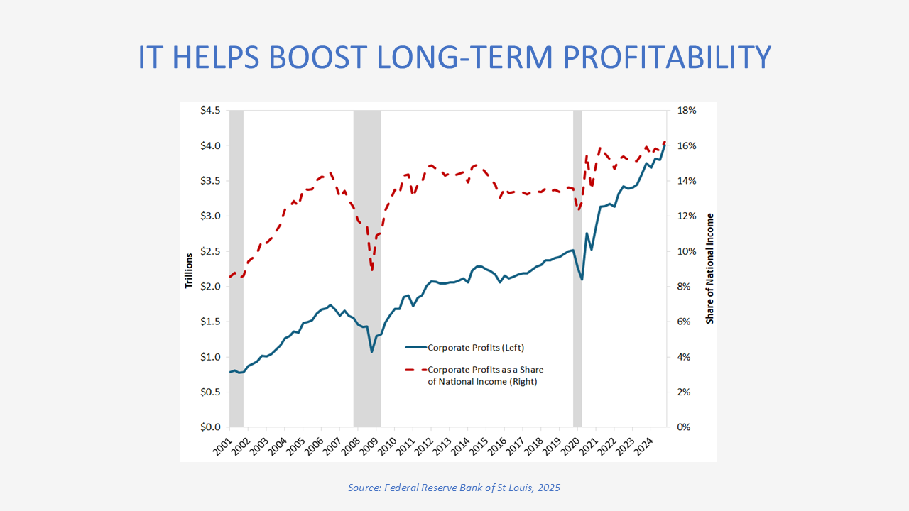 - Strong brands translate to profits: During the 2022–2023 inflation shock, firms passed through large price increases, attributing success to brand strength, which boosted margins and corporate profits.